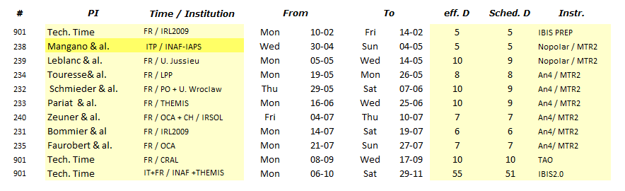 2025 Observing schedule